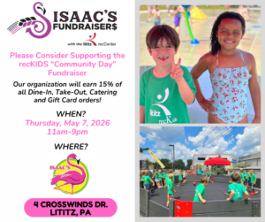 Head over to Lititz Isaac’s from 11:00 a.m. to 9:00 p.m. for a special “Community Day” fundraiser benefiting the recKids Department at Lititz recCenter. Enjoy delicious food and drinks and know that 15% of your purchase will be donated to support local kids’ programs.