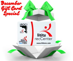 Purchase a gift card of $50 or more from December 1st – 31st and receive $10 in recBucks! Gift cards are available in any dollar amount and may be used at LrC, recROC, and Lititz Springs Pool.