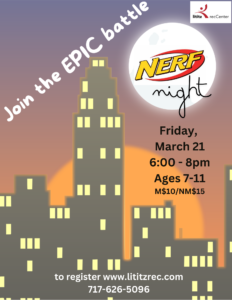 NERF NightFriday, Jan 16 6-8pm (Ages 7-11)
